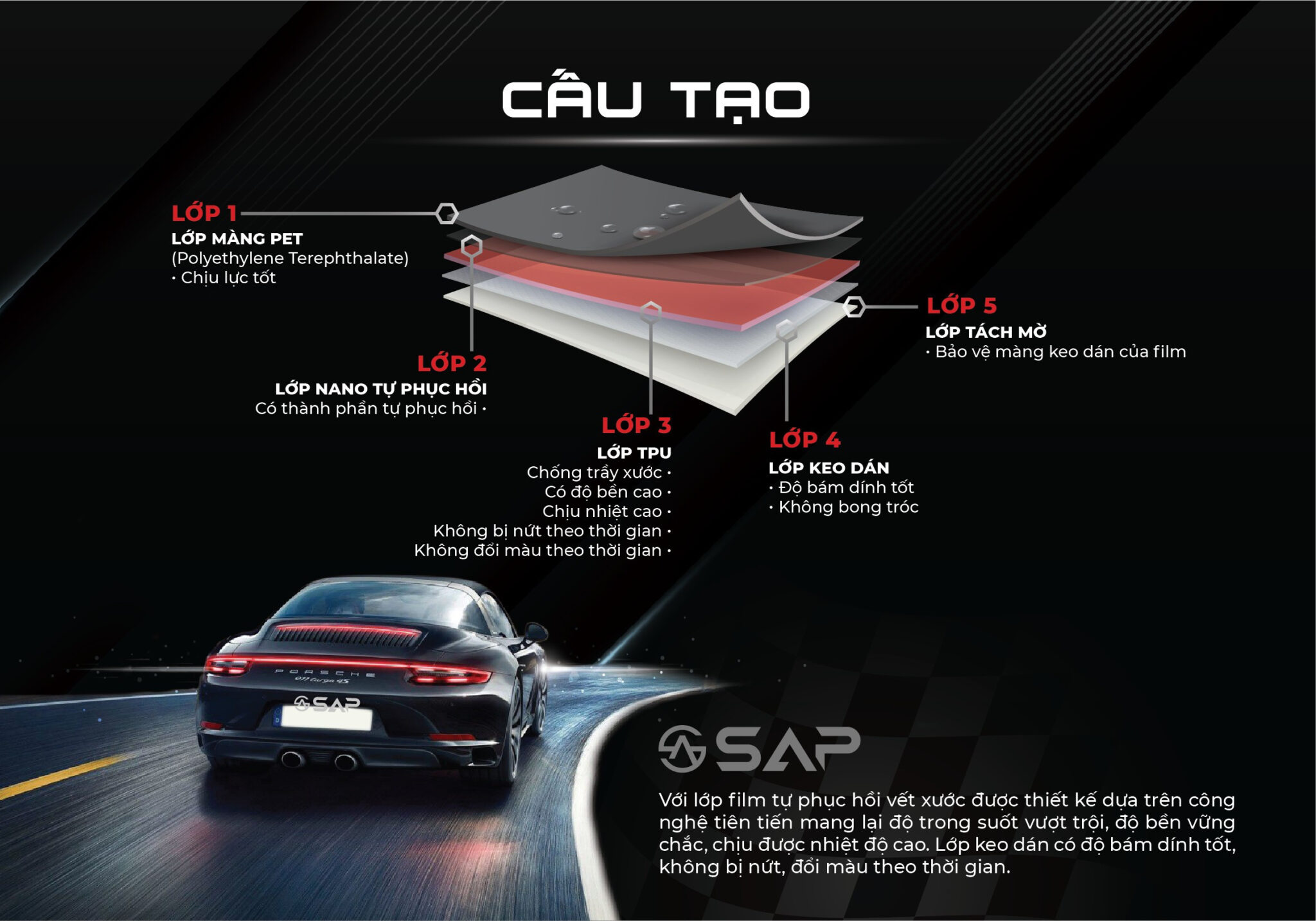 PPF SAP features high quality TPU components with German materials and technology. PPF SAP currently has the main product line SAP PRO.